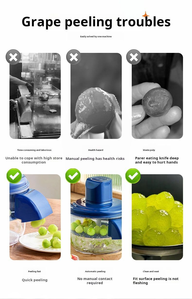 Imagine preparing a big bowl of grapes or cherry tomatoes for your family โ without spending half an hour peeling tiny skins one by one. With this automatic, rechargeable peeler, that time drops to just 20 seconds. No sore fingers. No wasted fruit. Just fresh, ready-to-eat goodness.